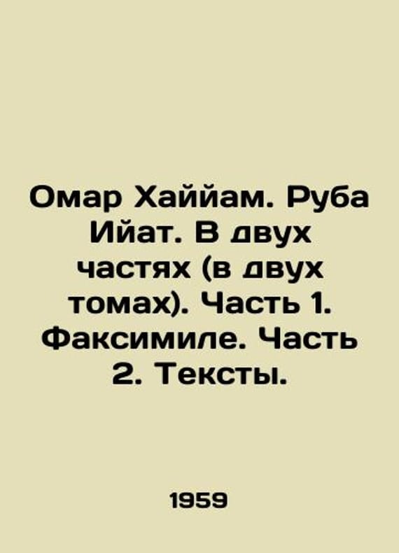 Omar Khayyam. Ruba Iyat. In two parts (in two volumes). Part 1. Fax. Part 2. Texts. In Russian /Omar Khayyam. Ruba Iyat. V dvukh chastyakh (v dvukh tomakh). Chast 1. Faksimile. Chast 2. Teksty. Series: Monuments of the literature of the peoples of the East. Texts. Small series II. Academy of Sciences of the USSR Institute of Oriental Studies, Publishing House of Eastern Literature. Edited by E.E. Bertels. M. Publishing House of Eastern Literature. 1959. We have thousands of titles and often several copies of each title may be available. Please feel free to contact us for a detailed description of the copies available. SKUalbebaacd3a60c00db4.