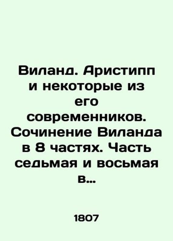 Wieland. Aristippus and some of his contemporaries. Wieland's work in 8 parts. Parts seven and eight in one cover. In Russian (ask us if in doubt)/Viland. Aristipp i nekotorye iz ego sovremennikov. Sochinenie Vilanda v 8 chastyakh. Chast' sed'maya i vos'maya v odnom pereplete. Translated from German by Ivan Tatishchev. M. University Typography. 1807. 128175s. We have thousands of titles and often several copies of each title may be available. Please feel free to contact us for a detailed description of the copies available. SKUalbebc6962bd237ae8b