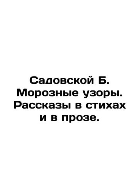 Sadovskaya B. Frosty Patterns. Stories in Poems and Prose. In Russian (ask us if in doubt)/Sadovskoy B. Moroznye uzory. Rasskazy v stikhakh i v proze.Pg. Time 79 p. We have thousands of titles and often several copies of each title may be available. Please feel free to contact us for a detailed description of the copies available. SKUalbebee91041cac1f69