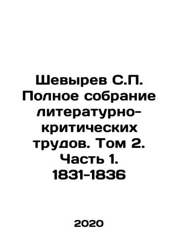 Shevyrev S.P. Complete collection of literary and critical works. Volume 2. Part 1. 1831-1836 In Russian /Shevyrev S.P. Polnoe sobranie literaturno-kriticheskikh trudov. Tom 2. Chast 1. 1831-1836 SPb Rostock 2020 688 p.. We have thousands of titles and often several copies of each title may be available. Please feel free to contact us for a detailed description of the copies available. SKUalbec3c27f62b55752c.