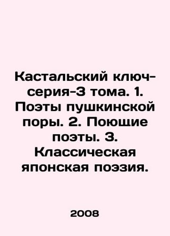 Kastal Key-series-3 volumes. 1. Poets of the Pushkin era. 2. Singing poets. 3. Classical Japanese poetry. In Russian /Kastalskiy klyuch-seriya-3 toma. 1. Poety pushkinskoy pory. 2. Poyushchie poety. 3. Klassicheskaya yaponskaya poeziya. M. Avanta and, Astrel. 2008, 479 and 479 and 447cc. We have thousands of titles and often several copies of each title may be available. Please feel free to contact us for a detailed description of the copies available. SKUalbec4e2f4e2303ea99.