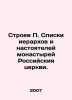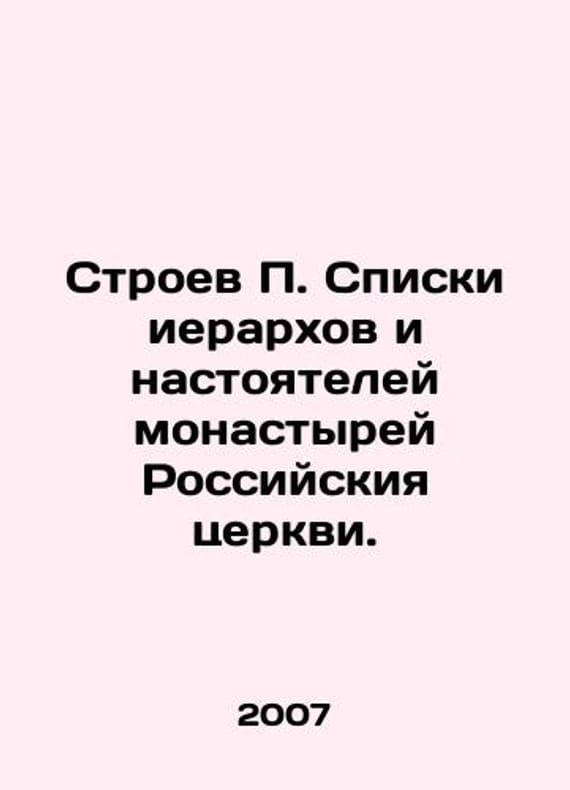 Stroev P. Lists of hierarchs and abbot of monasteries of the Russian Church. In Russian /Stroev P. Spiski ierarkhov i nastoyateley monastyrey Rossiyskiya tserkvi. M. Manuscript Monuments of Ancient Rus, 2007, 584s. We have thousands of titles and often several copies of each title may be available. Please feel free to contact us for a detailed description of the copies available. SKUalbec8e40543ae1142e.
