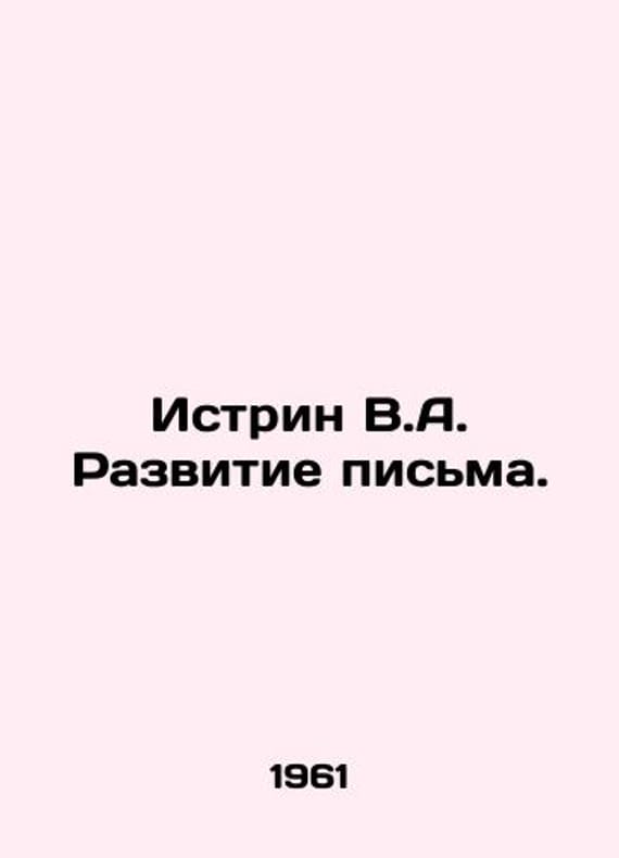 Istrin V.A. The development of writing. In Russian (ask us if in doubt)/Istrin V.A. Razvitie pisma. Moscow Academy of Sciences of the USSR 1961. The essence of writing its relation to language and thinking. -Issues of terminology and classification. -The origin of the original writing and its peculiarities. -The patterns of the emergence and development of logographic syllabic alphanumeric Slavic-Russian writing. -Special types of written signs. -General patterns of the development of writing. SKUalbec933297ef8c89fd.