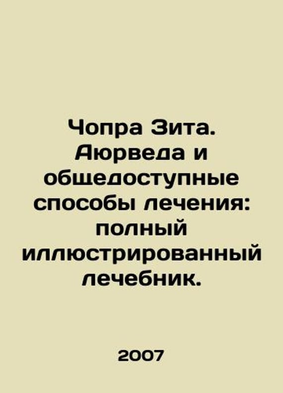 Chopra Zita. Ayurveda and Common Cures: A Complete Illustrated Therapy. In Russian /Chopra Zita. Ayurveda i obshchedostupnye sposoby lecheniya: polnyy illyustrirovannyy lechebnik. According to Ayurveda, our true health or wellbeing is the right balance of body, sensation, consciousness and soul. In this book you will find not only simple recipes for achieving harmony and well-being, but also recommendations for treating certain diseases, improving mind and body health, balanced diets, and detoxifying the body. We have thousands of titles and often several copies of each title may be available. Please feel free to contact us for a detailed description of the copies available. SKUalbecab9a0eb4a27915.