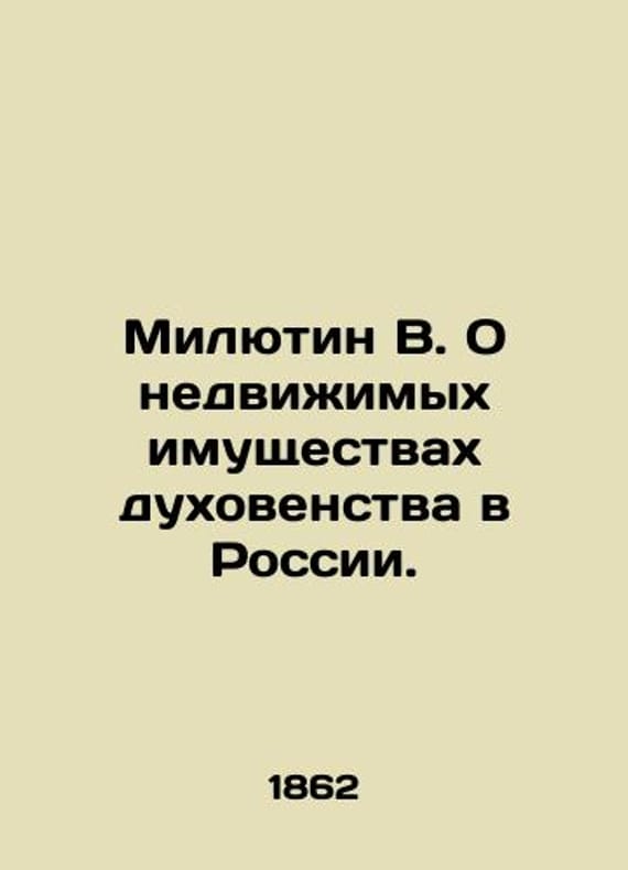 Milyutin V. On the Real Estate of Clergy in Russia. In Russian (ask us if in doubt)/Milyutin V. O nedvizhimykh imushchestvakh dukhovenstva v Rossii. Short description: In Russian (ask us if in doubt).M. 1862. 8 + 571s. We have thousands of titles and often several copies of each title may be available. Please feel free to contact us for a detailed description of the copies available. SKUalbecc434ba02cec5e8