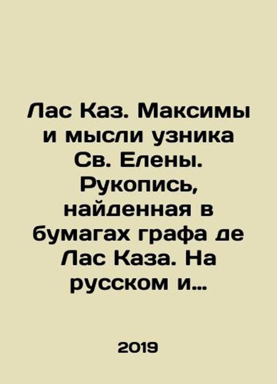 Las Caz. Maxims and thoughts of the prisoner of St. Helena. Manuscript found in the papers of the Count of Las Caz. In Russian and French. In Russian /Las Kaz. Maksimy i mysli uznika Sv. Eleny. Rukopis, naydennaya v bumagakh grafa de Las Kaza. Na russkom i frantsuzskom yaz.St. Petersburg Petropolis 2019.We have thousands of titles and often several copies of each title may be available. Please feel free to contact us for a detailed description of the copies available. SKUalbecee22e2f2cf0421.