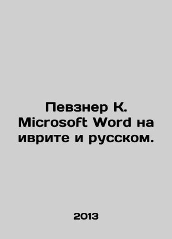 Pevzner K. Microsoft Word in Hebrew and Russian. In Russian /Pevzner K. Microsoft Word na ivrite i russkom. Tel Aviv Seferisrael 2013. We have thousands of titles and often several copies of each title may be available. Please feel free to contact us for a detailed description of the copies available. SKUalbed02ea516824b8b0.
