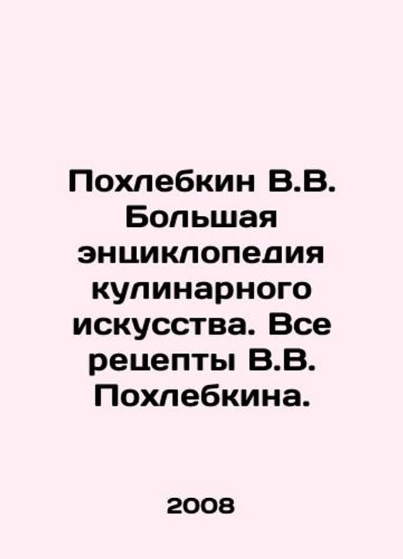 Pokhlebkin V.V. The large encyclopedia of culinary art. All recipes by V.V. Pokhlebkin. In Russian /Pokhlebkin V.V. Bolshaya entsiklopediya kulinarnogo iskusstva. Vse retsepty V.V. Pokhlebkina. M. Centropolygraph. 2008. 975s. We have thousands of titles and often several copies of each title may be available. Please feel free to contact us for a detailed description of the copies available. SKUalbed0739c64a9d409b.