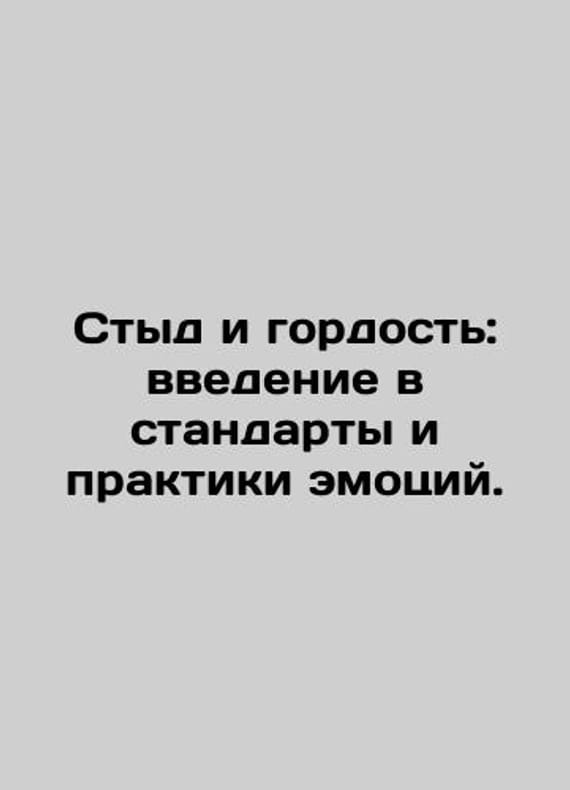 Shame and pride: an introduction to the standards and practices of emotion. In Russian /Styd i gordost: vvedenie v standarty i praktiki emotsiy. Series: Under the Sky of South Asia. Project Manager and Executive Editor I.P. Glushkova. Moscow. IDV RAS-Eastern Literature. 2021. 918 p. We have thousands of titles and often several copies of each title may be available. Please feel free to contact us for a detailed description of the copies available. SKUalbed108299bfc8337e.