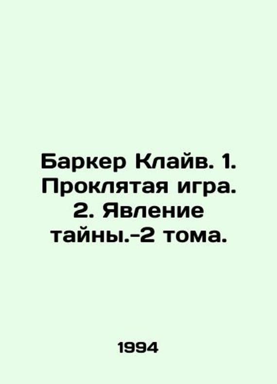 Clive Barker. 1. The Damned Game. 2. The Phenomenon of Mystery-2 Volumes. In Russian /Barker Klayv. 1. Proklyataya igra. 2. Yavlenie tayny.-2 toma. Zhukovsky. Cadman. 1994. 477 and 508p.. We have thousands of titles and often several copies of each title may be available. Please feel free to contact us for a detailed description of the copies available. SKUalbed39a9b74ff215ca.