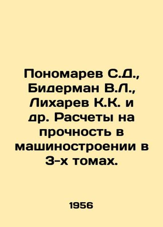 Ponomarev S.D., Biderman V.L., Likharev K.K. et al. Calculations for durability in mechanical engineering in 3 volumes. In Russian /Ponomarev S.D., Biderman V.L., Likharev K.K. i dr. Raschety na prochnost v mashinostroenii v 3-kh tomakh. M. MASHGIZ 1956-1959, 884 and 974 and 1118 p. We have thousands of titles and often several copies of each title may be available. Please feel free to contact us for a detailed description of the copies available. SKUalbedc0cf4505a30a03.