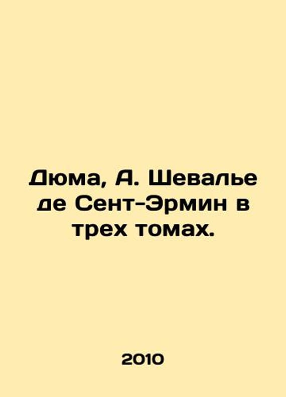 Dumas, A. Chevalier de Saint-Hermine in three volumes. In Russian /Dyuma, A. Shevale de Sent-Ermin v trekh tomakh. Capital, ArchivConsult 2010. We have thousands of titles and often several copies of each title may be available. Please feel free to contact us for a detailed description of the copies available. SKUalbedc17330359b15f9.