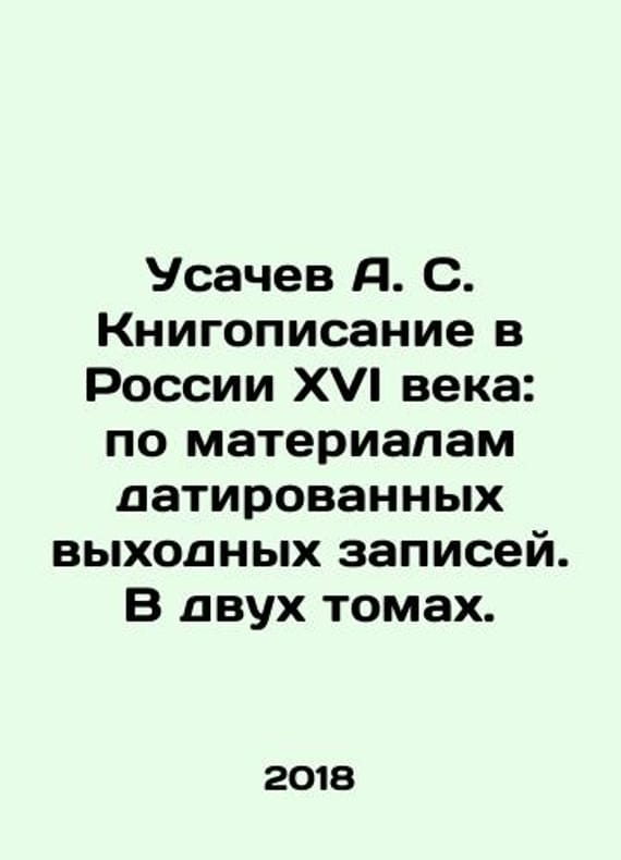 Usachev A. S. Book writing in sixteenth-century Russia: based on materials from dated weekend records. In two volumes. In Russian /Usachev A. S. Knigopisanie v Rossii XVI veka: po materialam datirovannykh vykhodnykh zapisey. V dvukh tomakh. Moscow Alliance-Arheo, 2018. 472 p. We have thousands of titles and often several copies of each title may be available. Please feel free to contact us for a detailed description of the copies available. SKUalbedc98b919b7234a6.
