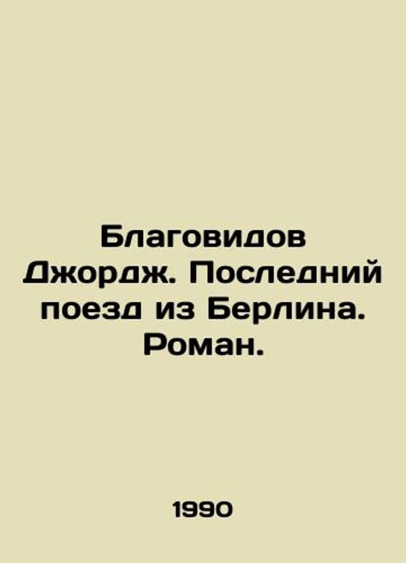 Blessed George. Last train from Berlin. Roman. In Russian /Blagovidov Dzhordzh. Posledniy poezd iz Berlina. Roman. Detective. Adventures. Fantasy. Translation from English by A. Bazin. Artist G. Yu. Kornyshev. Moscow. Orbit. 1990. 224 p. We have thousands of titles and often several copies of each title may be available. Please feel free to contact us for a detailed description of the copies available. SKUalbedd83ed1e7021923.