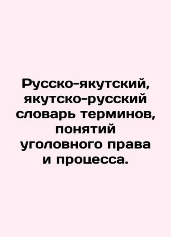 Russian-Yakut, Yakut-Russian Dictionary of Terms, Concepts of Criminal Law and Procedure. In Russian /Russko-yakutskiy, yakutsko-russkiy slovar terminov, ponyatiy ugolovnogo prava i protsessa. Avt. Borisov Yu.M., Gavrilev S.L., Ivanova S.V., Manchurina L.E., Petrova M.V. Yakutsk ISIS & PMNS Siberian Branch of Russian Academy of Sciences: Saidam 2023. 328 p. We have thousands of titles and often several copies of each title may be available. Please feel free to contact us for a detailed description of the copies available. SKUalbedf2502253012e6f.