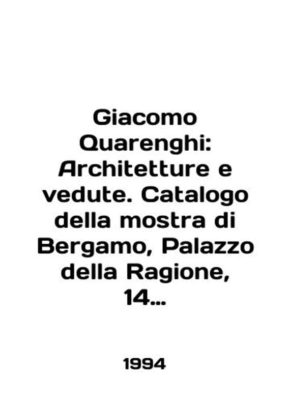 Giacomo Quarenghi: Architecture e vedute. Catalogo della mostra di Bergamo, Palazzo della Ragione, 14 maggio-17 luglio 1994. In English /Giacomo Quarenghi: Architetture e vedute. Catalogo della mostra di Bergamo, Palazzo della Ragione, 14 maggio-17 luglio 1994. Giacomo Quarenghi: Architecture and Graphics. Catalogue of the Bergamo exhibition, Palazzo della Raggione, 14 May-17 July 1994 Milano 1994 320 p. We have thousands of titles and often several copies of each title may be available. Please feel free to contact us for a detailed description of the copies available. SKUalbedf4c55e89d2627a.