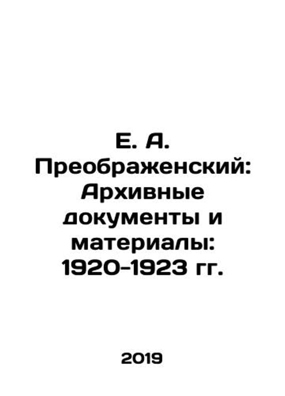 E. A. Preobrazhensky: Archival Documents and Materials: 1920-1923 In Russian (ask us if in doubt)/E. A. Preobrazhenskiy: Arkhivnye dokumenty i materialy: 1920-1923 gg.. description: In Russian (ask us if in doubt).M. M. Gorinov S. V. Tsakunov. Moscow b. and. 2009. 768 p. We have thousands of titles and often several copies of each title may be available. Please feel free to contact us for a detailed description of the copies available. SKUalbee0102cabb3c1677
