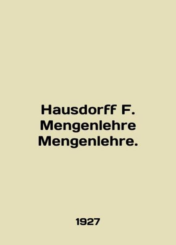 Hausdorff F. Mengenlehre Mengenlehre. In English /Hausdorff F. Mengenlehre Mengenlehre. Berlin-Leipzig Walter de Gruyter Co. 1927. 286 p. We have thousands of titles and often several copies of each title may be available. Please feel free to contact us for a detailed description of the copies available. SKUalbee41c55ac2c20005.