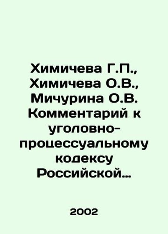 G.P. Khimicheva, O.V. Khimicheva, O.V. Michurina Commentary on the Criminal Procedure Code of the Russian Federation. In Russian /Khimicheva G.P., Khimicheva O.V., Michurina O.V. Kommentariy k ugolovno- protsessualnomu kodeksu Rossiyskoy Federatsii. Criminal Procedure for Students of the Discipline. Edited by G.P. Khimicheva. Textbook. M. Publishing House of Law. 2002. 192c. We have thousands of titles and often several copies of each title may be available. Please feel free to contact us for a detailed description of the copies available. SKUalbee650215f657118b.