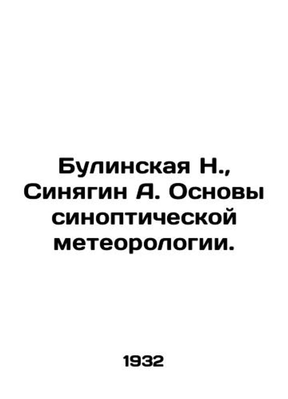 Bulinskaya N., Sinyagin A. Fundamentals of synoptic meteorology. In Russian /Bulinskaya N., Sinyagin A. Osnovy sinopticheskoy meteorologii. Main Geophysical Observatory. Bureau of Military Meteorology. Leningrad: Main Geophysical Observatory, (type. State Hydrological Institute). 1932. We have thousands of titles and often several copies of each title may be available. Please feel free to contact us for a detailed description of the copies available. SKUalbee7c772737f4f9f8.