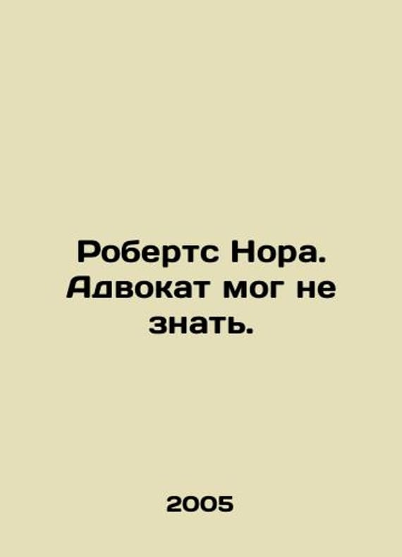 Roberts Nora. The lawyer might not have known. In Russian /Roberts Nora. Advokat mog ne znat. Series: Fantasies of a Middle-Age Woman. Translated from English by N. Mironova. Editor by N. Krylova. Moscow. Exmo. 2005.We have thousands of titles and often several copies of each title may be available. Please feel free to contact us for a detailed description of the copies available. SKUalbef46ee583eb94aca.
