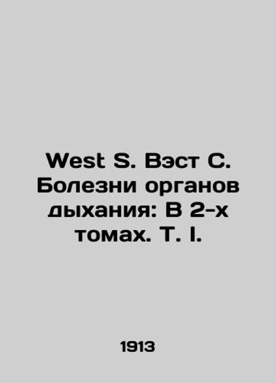 West S. West S. Respiratory Diseases: In 2 Volumes, T.I. In Russian /West S. Vest S. Bolezni organov dykhaniya: V 2-kh tomakh. T. I. With numerous diagrams and figures. Translation from the 2nd revised English edition of Dr. B. Mikhailov. St. Petersburg Medical Sovremennik. 1913. 488s. We have thousands of titles and often several copies of each title may be available. Please feel free to contact us for a detailed description of the copies available. SKUalbef698a18c12a0263.