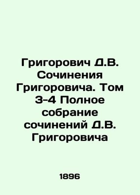 Grigorovich D.V. Grigorovichs Works. Volume 3-4 The Complete Collection of Works by D.V. Grigorovich In Russian /Grigorovich D.V. Sochineniya Grigorovicha. Tom 3-4 Polnoe sobranie sochineniy D.V. Grigorovicha Third, newly revised and amended edition. Appendix to the journal NIVA 1896, St. Petersburg 1896, 372c. We have thousands of titles and often several copies of each title may be available. Please feel free to contact us for a detailed description of the copies available. SKUalbef886dfe388439eb.