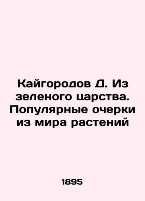Kaigorod D. From the Green Kingdom: Popular Essays from the World of Plants In Russian (ask us if in doubt)/Kaygorodov D. Iz zelenogo tsarstva. Populyarnye ocherki iz mira rasteniyWith many drawings. The sixth edition of St. Petersburg: Edition by A.S. Suvorin 1905. XVI 294 p. We have thousands of titles and often several copies of each title may be available. Please feel free to contact us for a detailed description of the copies available. SKUalbef969dbdcdd92f15