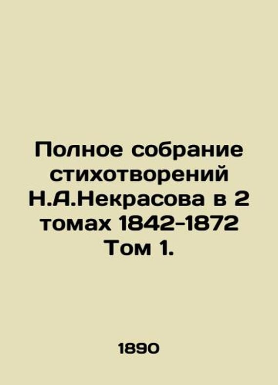 The Complete Collection of Poems by N.A.Nekrasov in 2 Volumes 1842-1872 Volume 1. In Russian /Polnoe sobranie stikhotvoreniy N.A.Nekrasova v 2 tomakh 1842-1872 Tom 1. St. Petersburg Typography Glazunov 1890, 606 pp. We have thousands of titles and often several copies of each title may be available. Please feel free to contact us for a detailed description of the copies available. SKUalbefb83270a98185b2.