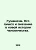 Humanism. Its meaning and significance in the new history of mankind. In Russian /Gumanizm. Ego smysl i znachenie v novoy istorii chelovechestva. Religious and Philosophical Library. Issue XXVII Moscow A.Snegirevas Print, 1912. 76.4 p. We have thousands of titles and often several copies of each title may be available. Please feel free to contact us for a detailed description of the copies available. SKUalbefd8bf5f7f8bf9dd.