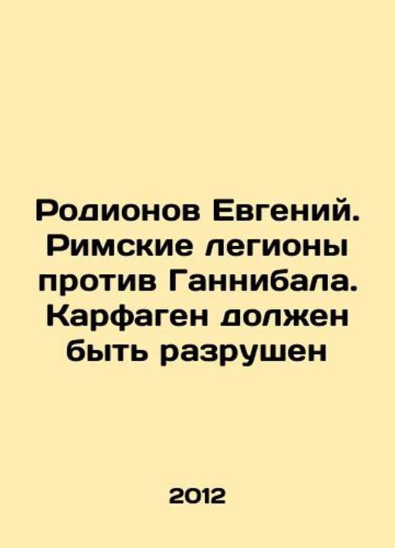 Rodionov Evgeny. Roman legions against Hannibal. Carthage must be destroyed In Russian /Rodionov Evgeniy. Rimskie legiony protiv Gannibala. Karfagen dolzhen byt razrushen Series: Legions in Battle. The Roman Wars by M. Eksmo 2012. 608s. We have thousands of titles and often several copies of each title may be available. Please feel free to contact us for a detailed description of the copies available. SKUalbf0015ee51cd4d8eb.