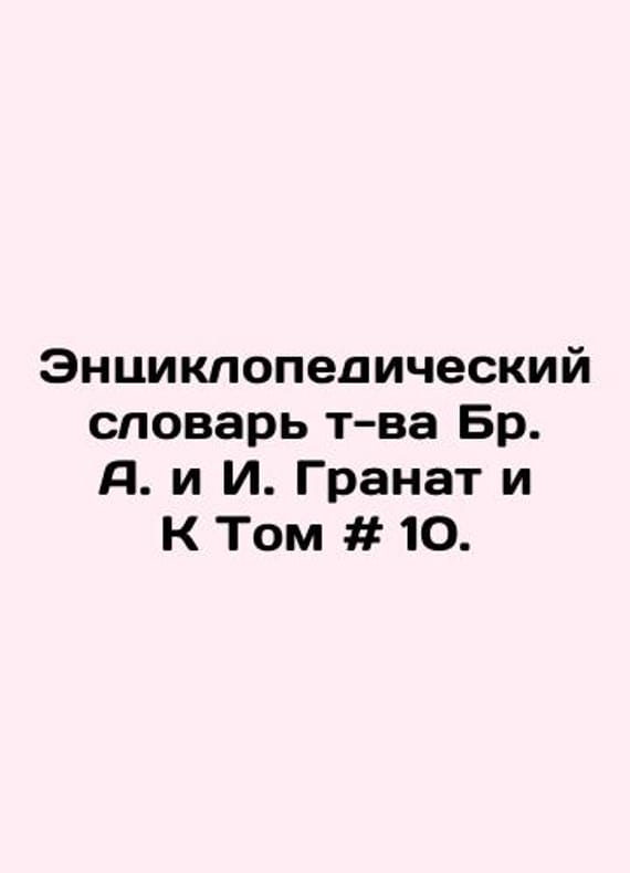 Encyclopedic Dictionary of Br. A. and I. Pomegranate and K Volume # 10. In Russian /Entsiklopedicheskiy slovar t-va Br. A. i I. Granat i K Tom # 10. 11th Stereotyped Edition M of the Russian Bibliographic Institute Pomegranate. We have thousands of titles and often several copies of each title may be available. Please feel free to contact us for a detailed description of the copies available. SKUalbf0103dcaf83e35fc.