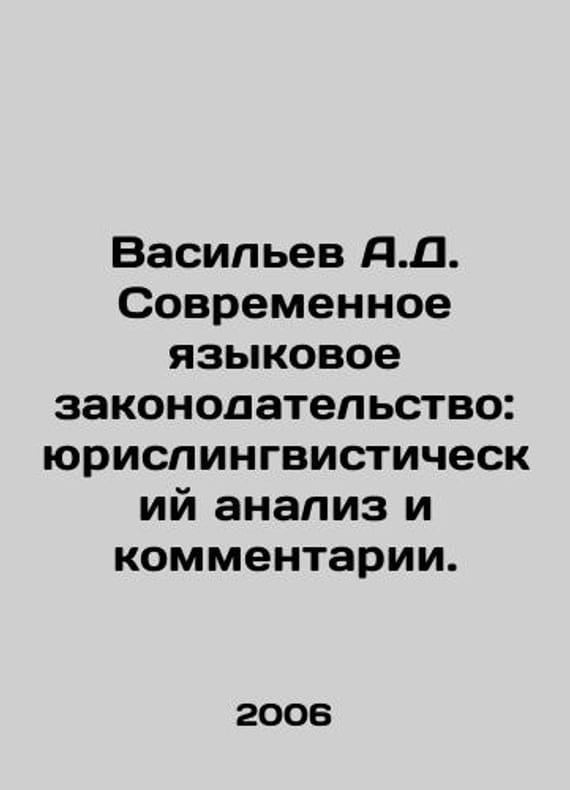 Vasiliev A.D. Modern language legislation: jurisprudential linguistic analysis and commentary. In Russian /Vasilev A.D. Sovremennoe yazykovoe zakonodatelstvo: yurislingvisticheskiy analiz i kommentarii. Monograph. Krasnoyarsk SibYui 2006. We have thousands of titles and often several copies of each title may be available. Please feel free to contact us for a detailed description of the copies available. SKUalbf01c697319b0dc92.