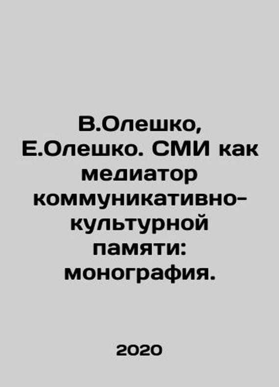 V.Oleshko, E.Oleshko. Mass media as mediator of communicative and cultural memory: monograph. In Russian /V.Oleshko, E.Oleshko. SMI kak mediator kommunikativno-kulturnoy pamyati: monografiya. Ekaterinburg Ural State University, 2020, 470 p. We have thousands of titles and often several copies of each title may be available. Please feel free to contact us for a detailed description of the copies available. SKUalbf0551a7bc3cb829d.