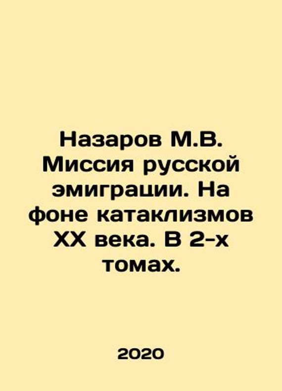 Nazarov M.V. The mission of Russian emigration. Against the backdrop of the cataclysms of the twentieth century. In two volumes. In Russian /Nazarov M.V. Missiya russkoy emigratsii. Na fone kataklizmov KhKh veka. V 2-kh tomakh. Moscow-St. Petersburg. Russian Idea. 2020. 544 pp. We have thousands of titles and often several copies of each title may be available. Please feel free to contact us for a detailed description of the copies available. SKUalbf05c4743f249fce5.
