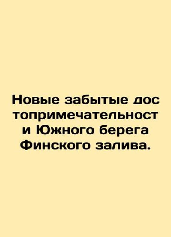 New Forgotten Landmarks on the South Bank of the Gulf of Finland. In Russian /Novye zabytye dostoprimechatelnosti Yuzhnogo berega Finskogo zaliva. St. Petersburg Inkeri 2021. We have thousands of titles and often several copies of each title may be available. Please feel free to contact us for a detailed description of the copies available. SKUalbf0758c6cc43b036c.