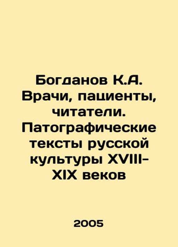 Bogdanov K.A. Doctors, Patients, Readers. Pathographic Texts of Russian Culture in the 18th-19th Centuries In Russian /Bogdanov K.A. Vrachi, patsienty, chitateli. Patograficheskie teksty russkoy kultury XVIII-XIX vekov Series: Nation and Culture. New Research M United Humanitarian Editions 2005 504c. We have thousands of titles and often several copies of each title may be available. Please feel free to contact us for a detailed description of the copies available. SKUalbf089161866def3d4.