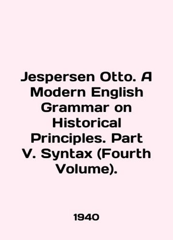 Jespersen Otto. A Modern English Grammar on Historical Principles. Part V. Syntax (Fourth Volume). In English /Jespersen Otto. A Modern English Grammar on Historical Principles. Part V. Syntax (Fourth Volume). Modern English Grammar on Historical Principles. Part 5. Syntax. (Volume Four). Copenhagen. Ejnar Munksgaard. 1940. We have thousands of titles and often several copies of each title may be available. Please feel free to contact us for a detailed description of the copies available. SKUalbf0be0701f8437e96.