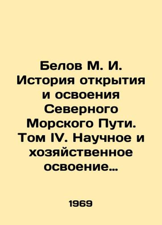 Belov M. I. History of the Discovery and Development of the Northern Sea Route. Volume IV. Scientific and Economic Development of the Soviet North 1933-1945 In Russian /Belov M. I. Istoriya otkrytiya i osvoeniya Severnogo Morskogo Puti. Tom IV. Nauchnoe i khozyaystvennoe osvoenie Sovetskogo Severa 1933-1945 gg. Edited by: Ya.Ya.Gakkel, M.B.Chernenko L. Gidrometeizdat, 1969. 612 p. We have thousands of titles and often several copies of each title may be available. Please feel free to contact us for a detailed description of the copies available. SKUalbf0d06c5cfef40651.