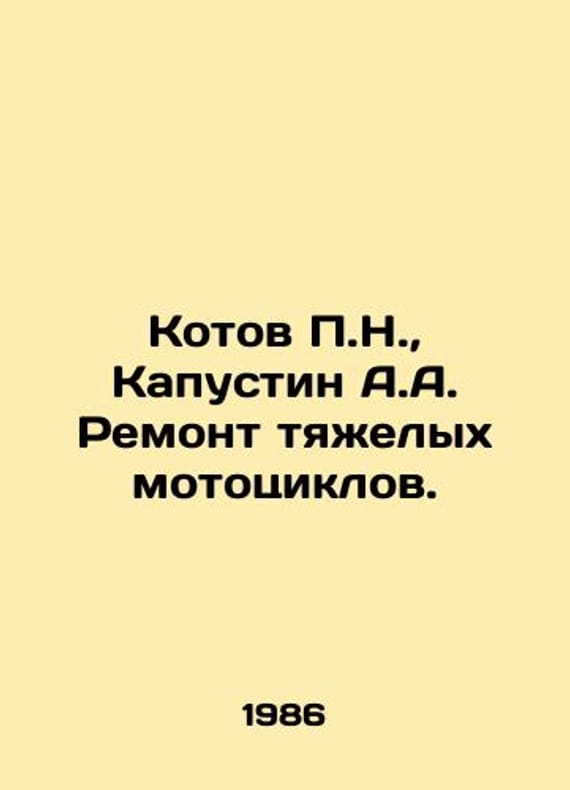 Kotov P.N., Kapustin A.A. Repair of heavy motorcycles. In Russian /Kotov P.N., Kapustin A.A. Remont tyazhelykh mototsiklov. Leningrad Machine Building, 2nd Edition, 1990.0. 335 p. We have thousands of titles and often several copies of each title may be available. Please feel free to contact us for a detailed description of the copies available. SKUalbbff38fa93cfbd91f.