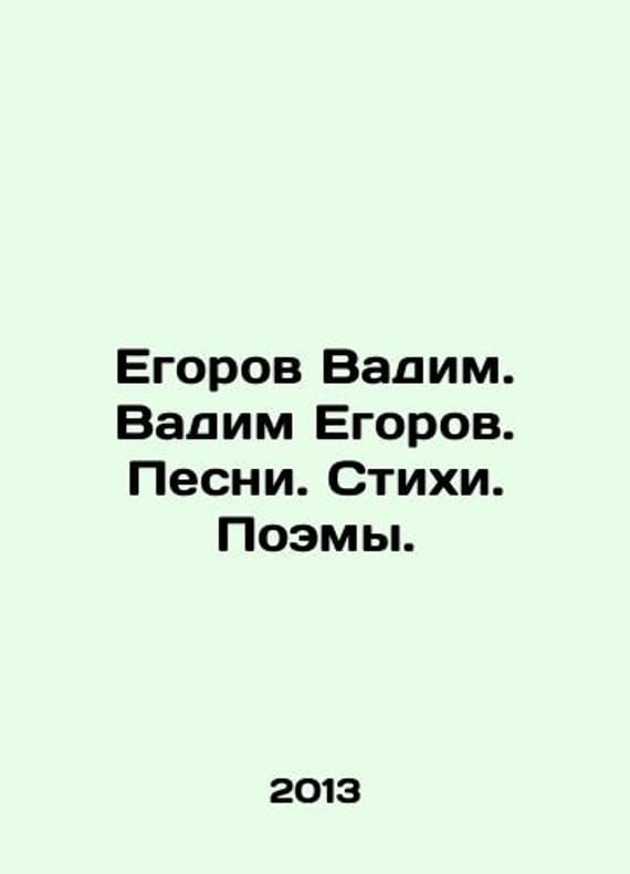 Egorov Vadim. Vadim Egorov. Songs. Poems. In Russian /Egorov Vadim. Vadim Egorov. Pesni. Stikhi. Poemy. M. Ventana-Count 2013. 576 p. We have thousands of titles and often several copies of each title may be available. Please feel free to contact us for a detailed description of the copies available. SKUalbf1231151549dd8d8.