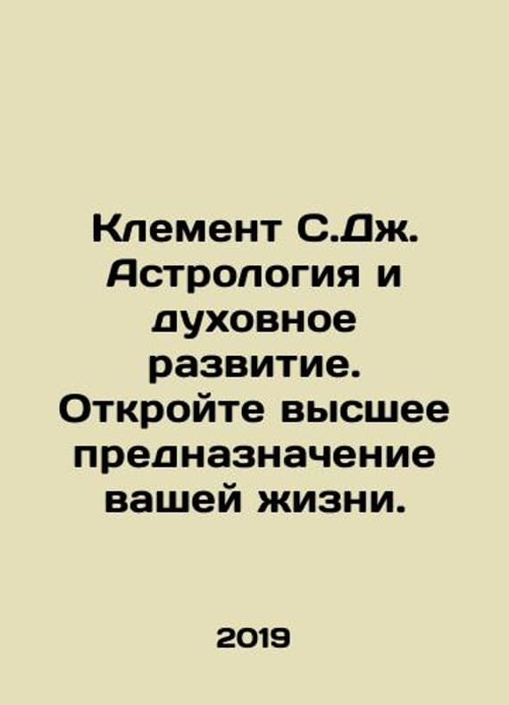 Clement S. J. Astrology and Spiritual Development. Discover the higher purpose of your life. In Russian /Klement S.Dzh. Astrologiya i dukhovnoe razvitie. Otkroyte vysshee prednaznachenie vashey zhizni. St. Petersburg All 2019 240 pp. We have thousands of titles and often several copies of each title may be available. Please feel free to contact us for a detailed description of the copies available. SKUalbf1263076ed82b00e.