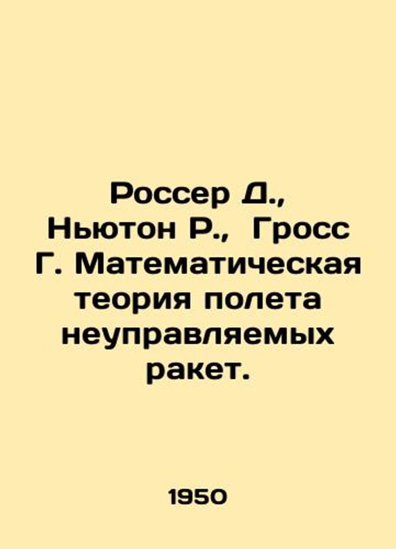Rosser D., Newton R., Gross G. Mathematical theory of unguided rocket flight. In Russian /Rosser D., Nyuton R., Gross G. Matematicheskaya teoriya poleta neupravlyaemykh raket. Translation from English by A.N. Rubashov, edited by Professor A.A. Kosmodemyansky. We have thousands of titles and often several copies of each title may be available. Please feel free to contact us for a detailed description of the copies available. SKUalbf13fb6e98a200c26.