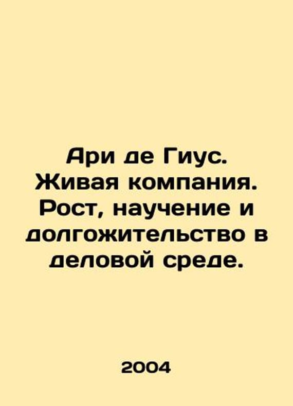 Ari de Gius. Live Company. Growth, Learning, and Longevity in a Business Environment. In Russian /Ari de Gius. Zhivaya kompaniya. Rost, nauchenie i dolgozhitelstvo v delovoy srede. St. Petersburg School of Economics. 2004 224 pp. We have thousands of titles and often several copies of each title may be available. Please feel free to contact us for a detailed description of the copies available. SKUalbf151977de51dd070.