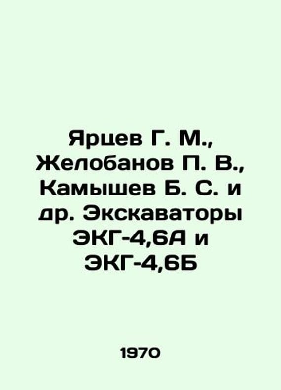 Yartsev G. M., Zhelobanov P. V., Kamyshev B. S. et al. Excavators ECG 4.6A and ECG 4.6 In Russian /Yartsev G. M., Zhelobanov P. V., Kamyshev B. S. i dr. Ekskavatory EKG 4,6A i EKG 4,6B Design and Operation of Mechanical Engineering 1970. 344 p. We have thousands of titles and often several copies of each title may be available. Please feel free to contact us for a detailed description of the copies available. SKUalbf16f2e5d9096bc0c.