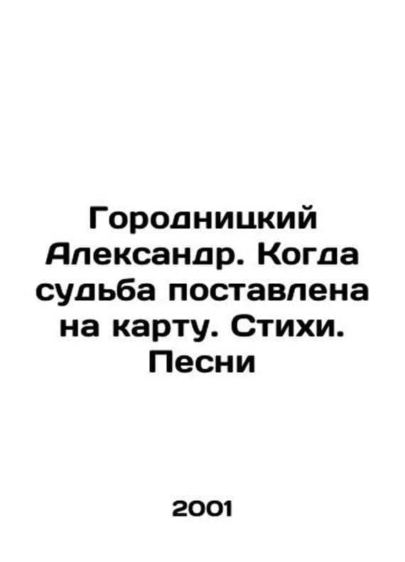 Alexander Gorodnitsky. When fate is at stake. Poems. Songs In Russian /Gorodnitskiy Aleksandr. Kogda sudba postavlena na kartu. Stikhi. Pesni Alexander Gorodnitsky. When fate is at stake. Poems. Songs 2001. Moscow. We have thousands of titles and often several copies of each title may be available. Please feel free to contact us for a detailed description of the copies available. SKUalbf1a50d08e58a0f7d.