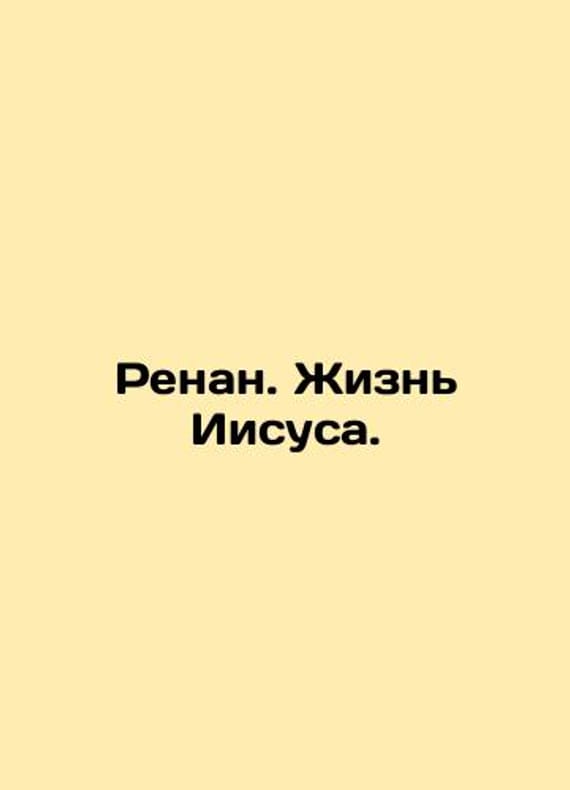 Renan. The Life of Jesus. In Russian /Renan. Zhizn Iisusa. Publishing House of N. Glagolev 19,,, city 164s. We have thousands of titles and often several copies of each title may be available. Please feel free to contact us for a detailed description of the copies available. SKUalbf1af44bd2b78e8c2.