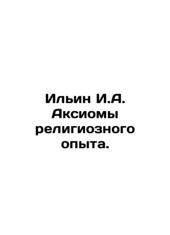 Ilyin I.A. Axioms of Religious Experience. In Russian /Ilin I.A. Aksiomy religioznogo opyta. M. Academic Project: Paradigm 2022, 639 p. We have thousands of titles and often several copies of each title may be available. Please feel free to contact us for a detailed description of the copies available. SKUalbf1b9e03d6113a5e9.