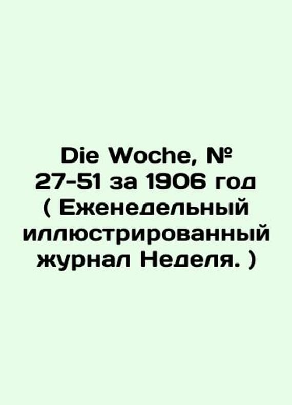 Die Woche # 27-51 for 1906 (Weekly Illustrated Journal of the Week.) In Russian (ask us if in doubt)/Die Woche # 27-51 za 1906 god ( Ezhenedelnyy illyustrirovannyy zhurnal Nedelya. ). Berlin 1906 1106 p. We have thousands of titles and often several copies of each title may be available. Please feel free to contact us for a detailed description of the copies available. SKUalbf206cde4d6b9f7b6