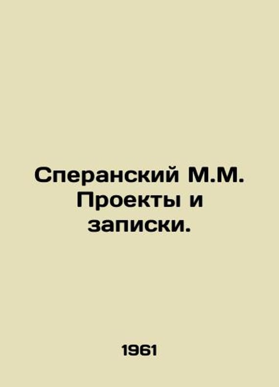 Speransky M.M. Projects and notes. In Russian /Speranskiy M.M. Proekty i zapiski. Prepared for printing by A. Kopanev and M. Kukushkina. Edited by S. Valk. We have thousands of titles and often several copies of each title may be available. Please feel free to contact us for a detailed description of the copies available. SKUalbf208c0f51c5d0301.